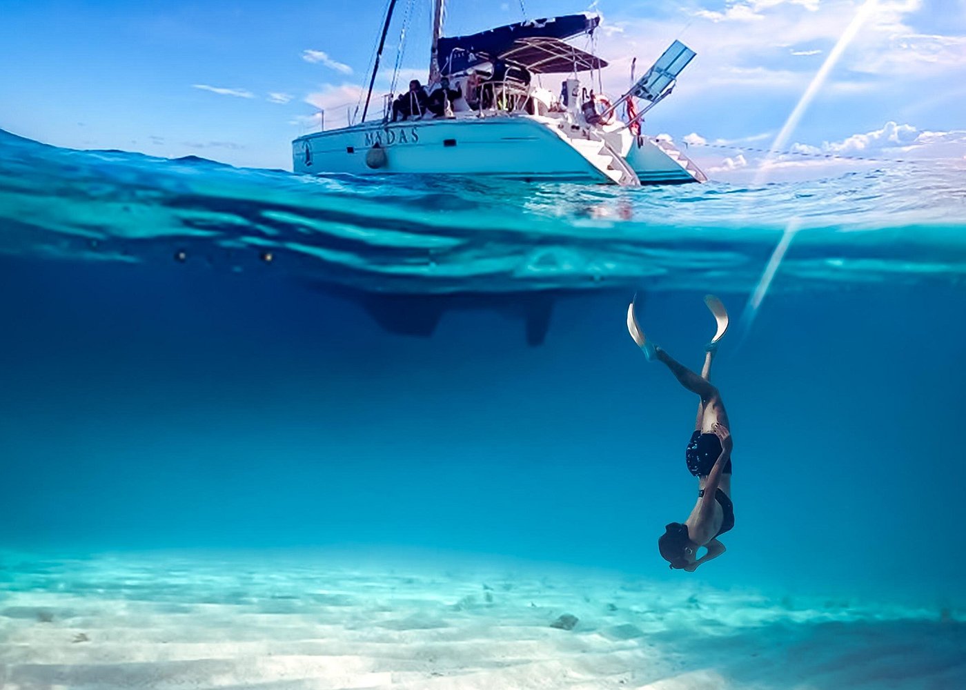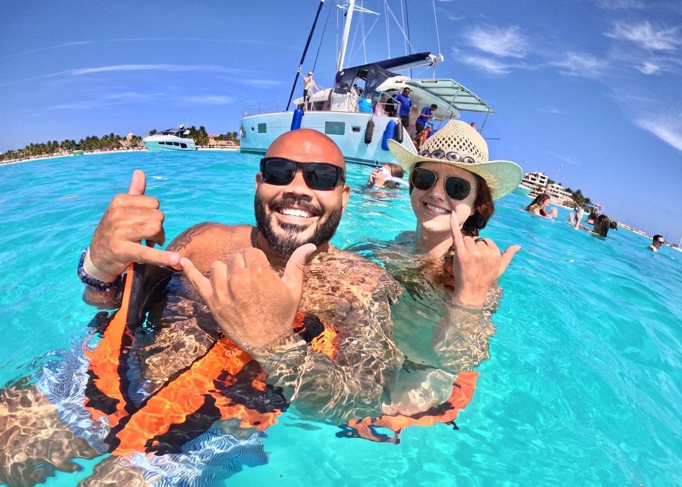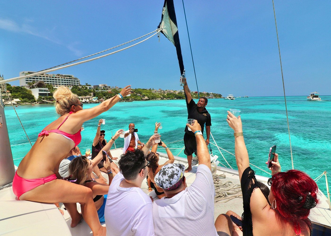 As the afternoon light softens and the call of Cancún’s horizon returns, you board the catamaran for the sail back. The return journey is a time of reflection and revelry, share photos with new friends, relive the day’s highlights with a final drink in hand, or simply lean back and listen to the waves lapping against the hull as the warm sunset begins its descent.
